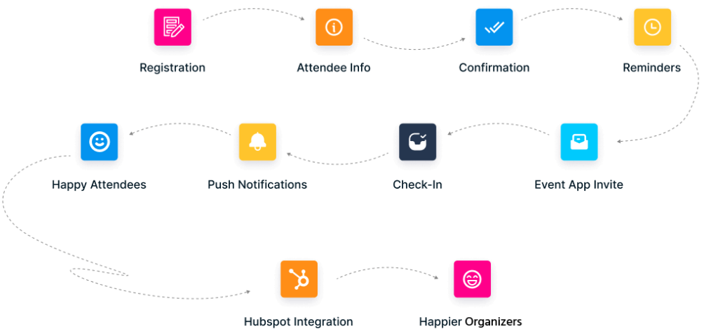 - HubSpot Integration for Marketing Automation: Synced attendee data in real time to enable targeted campaign execution, performance tracking, and personalized post-event follow-ups.
