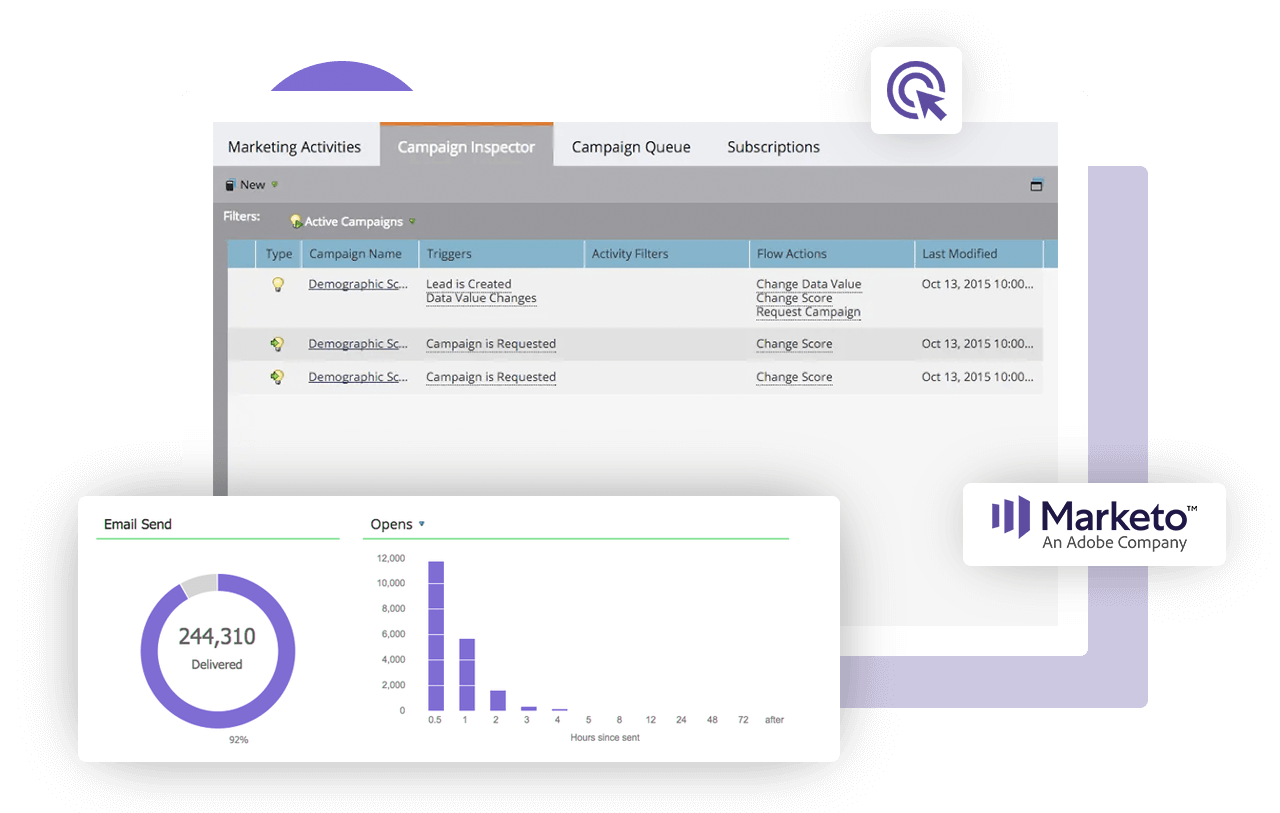- Utilize event data and leverage triggers to auto-update leads or custom objects, update campaigns, and manage lists.