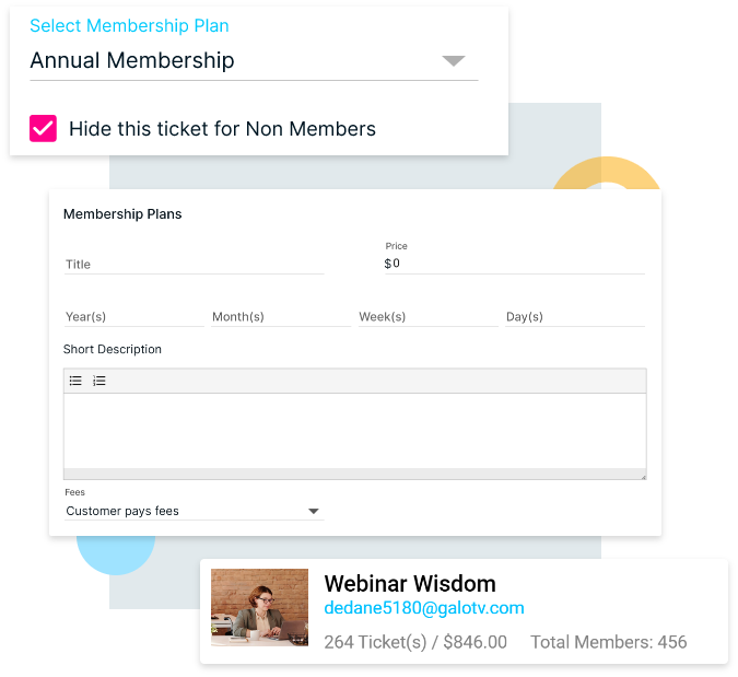 Easily manage memberships through our intuitive platform. Create membership plans, track membership sales, access attendee data, and monitor engagement with ease.