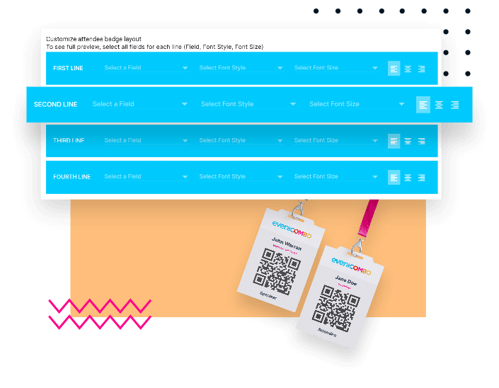 Provide customized onsite badging for your attendees with real time event check-in and numerous badging options with Eventcombo’s event management platform.