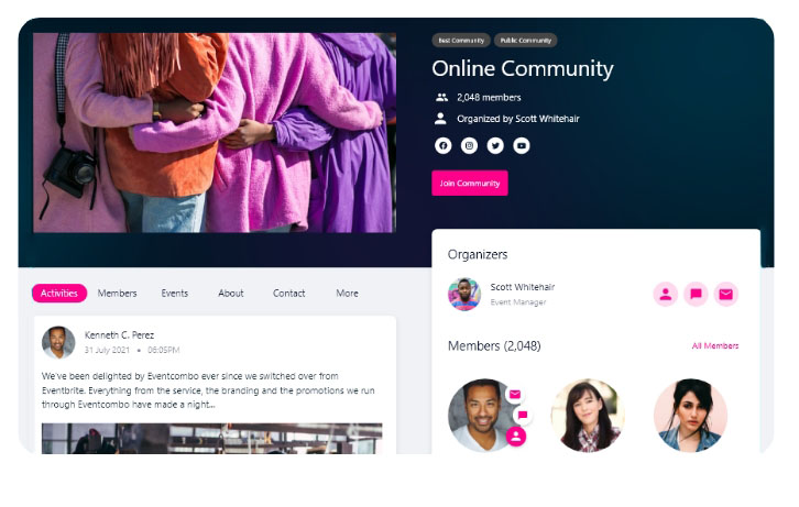 With our unlimited model, there is no such thing as too small or too large. Our cloud-based solution allows you to calibrate and set the appropriate boundaries for your organization. If you have an event community of 50 or 500,000 members, create a powerful engagement experience, Community™ by Eventcombo is built for scale.