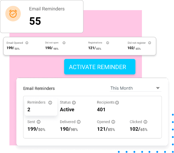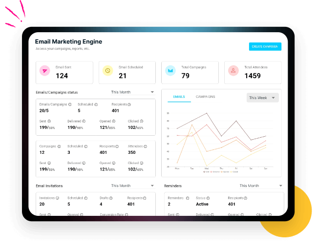 Our Event Email Marketing Engine provides detailed tracking and reporting on your email campaigns. Track clicks, opens, bounces, and other key metrics to understand how your emails are performing. Use this data to refine your email marketing strategy and drive better results. You can see who’s opening your emails and when, giving you valuable insights into the effectiveness of your email campaigns.