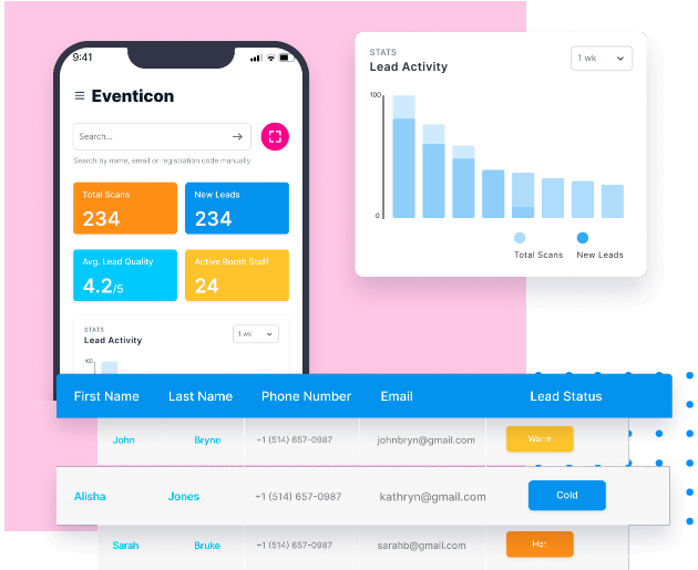 Take your offering for exhibitors to the next level with Exhibitor Lead Retrieval App, featuring powerful tools like activations, lead tracking, note taking, lead-ratings, 1:1 meeting bookings and more.
