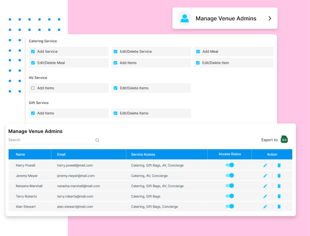 - Provide access levels and permissions for users based on venue roles.