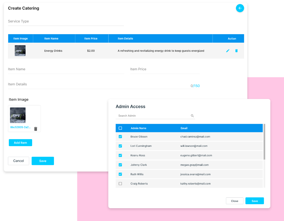 - Ensure availability of catering services based on event schedules, guest count, and menu selections.